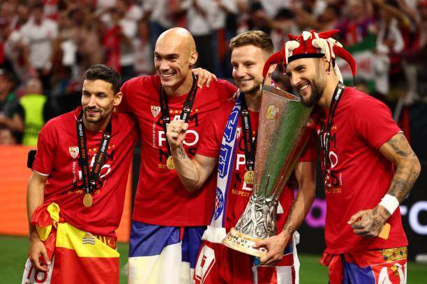 “鸟叔”赛前倒是对门迪利瓦尔很客气,一来对方是忠厚长者,二来资历上和自己实在差太远。穆里尼奥自己也是个年过花甲的长者,很多事都看开了。而两个老头带的这两支球队也有不少老将,尤其以塞维利亚这边更突出。35岁的拉基蒂奇打满全场,个人判断失误造成丢球,随后一脚远射中柱。他是队中成就最高的球员,欧冠、欧联、西甲都拿过,世界杯拿过亚军。上次带领塞维利亚拿欧联杯已是9年前,也是点球大战取胜(本菲卡)。他那时候就是队长,获得赛事最佳球员,恍如隔世。36岁的费尔南多几乎踢满全场,最后时刻被霍尔丹换下。37岁的纳瓦斯也坚持到了加时赛。这几位赢了上次决赛的老将是门迪利瓦尔的底气,是经验上击败穆里尼奥这个冠军教练的保障。